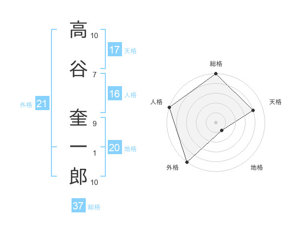 高谷 奎一郎さんを姓名の画数から五運を鑑定