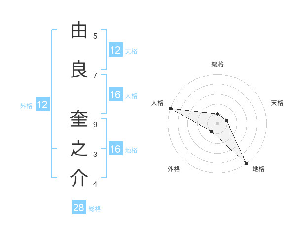 由良 奎之介さんを姓名の画数から五運を鑑定