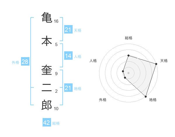 亀本 奎二郎さんを姓名の画数から五運を鑑定