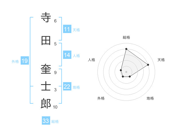 寺田 奎士郎さんの総格は33画の4点!