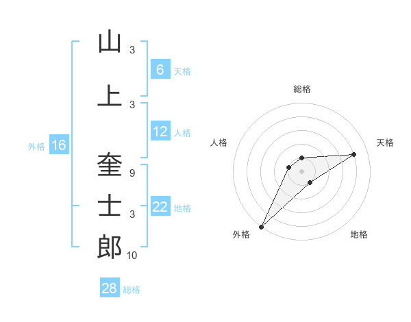 山上 奎士郎さんを姓名の画数から五運を鑑定