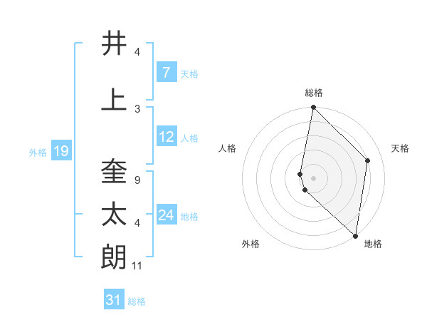 井上 奎太朗さんを姓名の画数から五運を鑑定