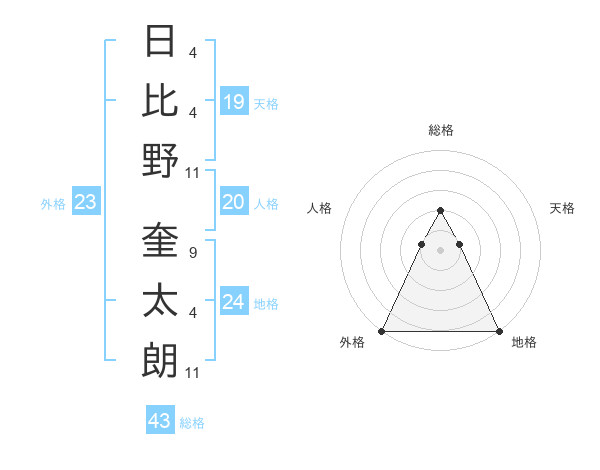 日比野 奎太朗さんを姓名の画数から五運を鑑定