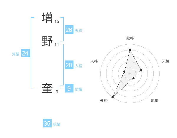 増野 奎さんの総格は35画の4点!