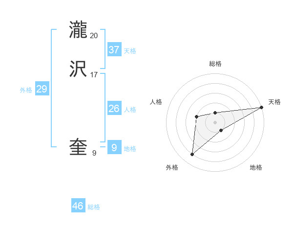 瀧沢 奎さんの天格は37画の5点!