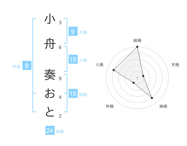 小舟 奏おとさんを姓名の画数から五運を鑑定