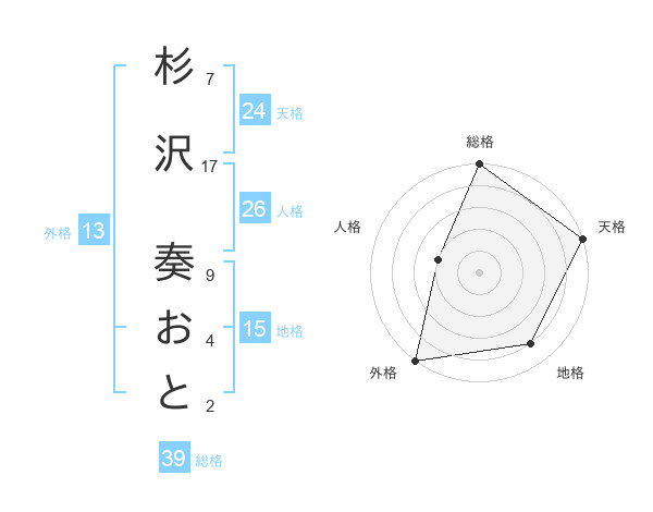 杉沢 奏おとさんを姓名の画数から五運を鑑定