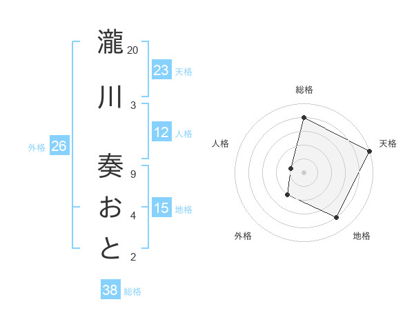 瀧川 奏おとさんの天格は23画の5点!