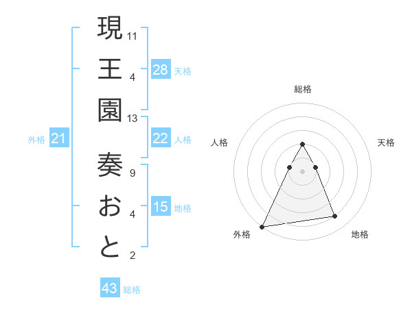 現王園 奏おとさんを姓名の画数から五運を鑑定