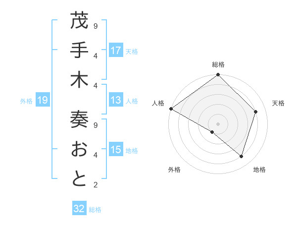 茂手木 奏おとさんを姓名の画数から五運を鑑定