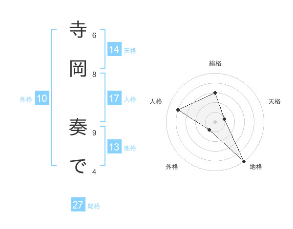 寺岡 奏でさんを姓名の画数から五運を鑑定
