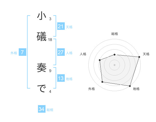 小礒 奏でさんの総格は34画の2点!