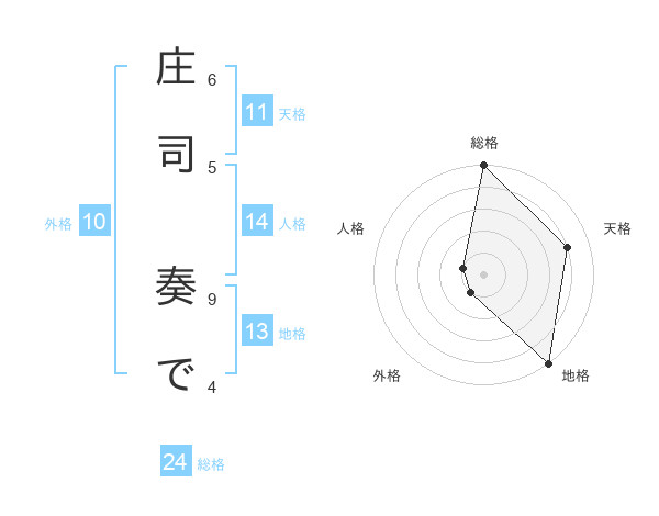 庄司 奏でさんの総格は24画の5点!