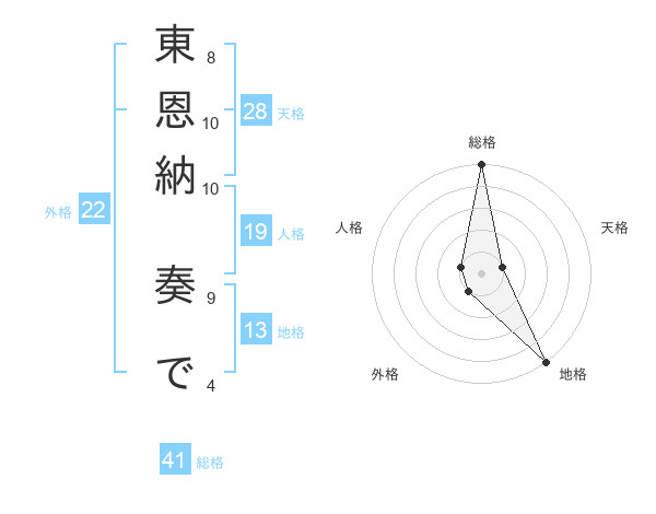 東恩納 奏でさんを姓名の画数から五運を鑑定