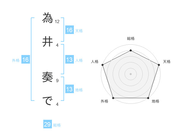 為井 奏でさんの天格は16画の5点!