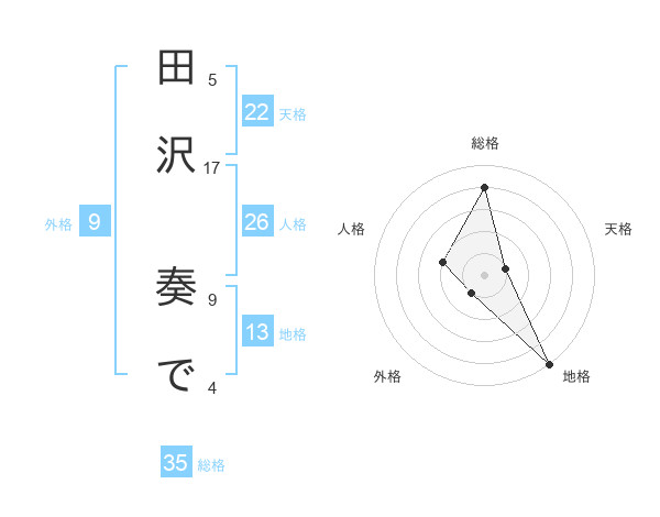 田沢 奏でさんを姓名の画数から五運を鑑定
