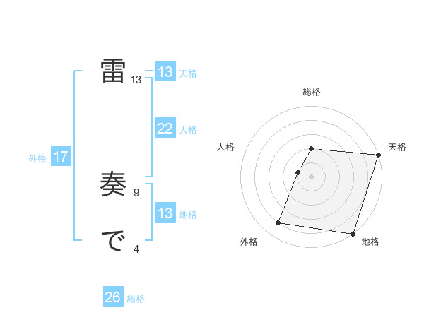 雷 奏でさんの地格は13画の5点!
