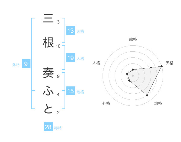 三根 奏ふとさんを姓名の画数から五運を鑑定