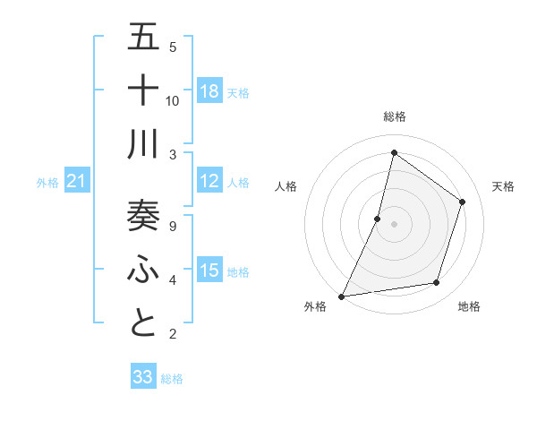 五十川 奏ふとさんの外格は21画の5点!