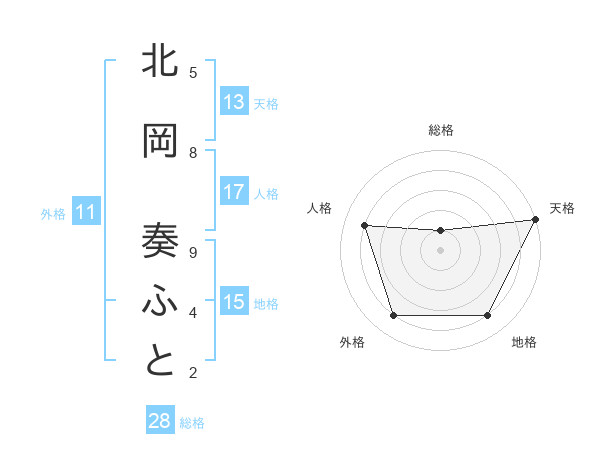 北岡 奏ふとさんを姓名の画数から五運を鑑定
