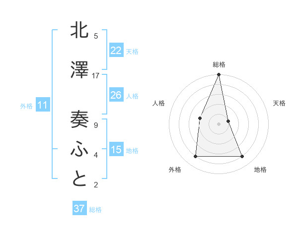 北澤 奏ふとさんを姓名の画数から五運を鑑定