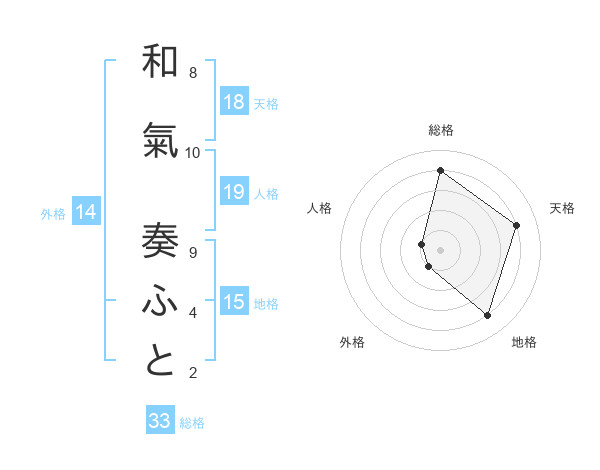 和氣 奏ふとさんの天格は18画の4点!