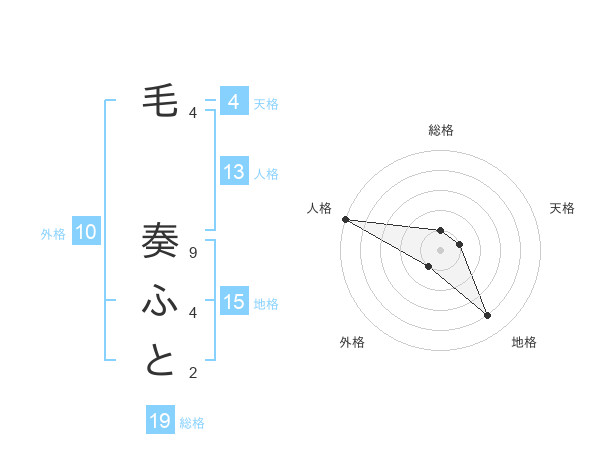 毛 奏ふとさんの総格は19画の1点!