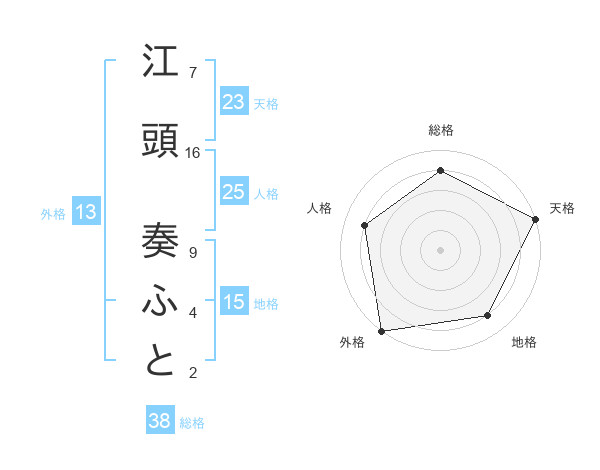 江頭 奏ふとさんを姓名の画数から五運を鑑定