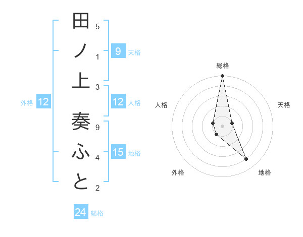 田ノ上 奏ふとさんを姓名の画数から五運を鑑定