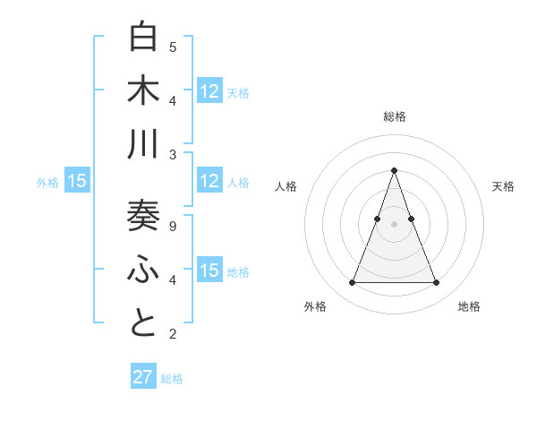 白木川 奏ふとさんを姓名の画数から五運を鑑定