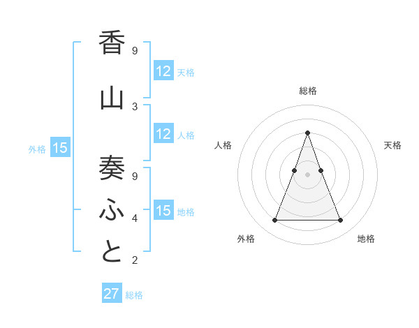 香山 奏ふとさんを姓名の画数から五運を鑑定