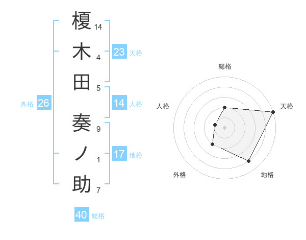 榎木田 奏ノ助さんを姓名の画数から五運を鑑定