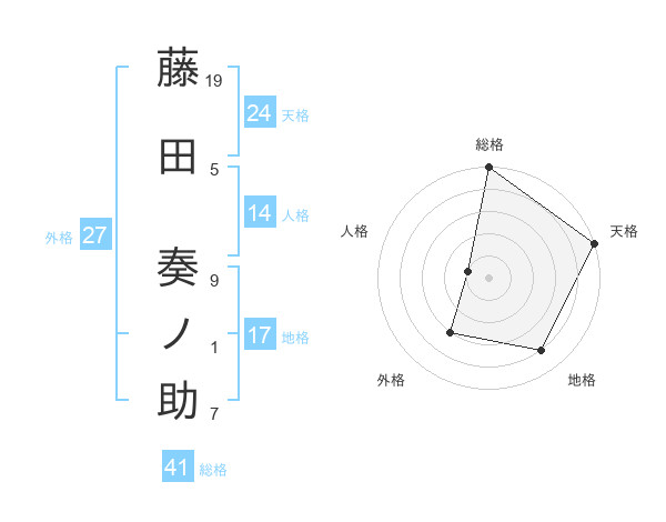 藤田 奏ノ助さんを姓名の画数から五運を鑑定
