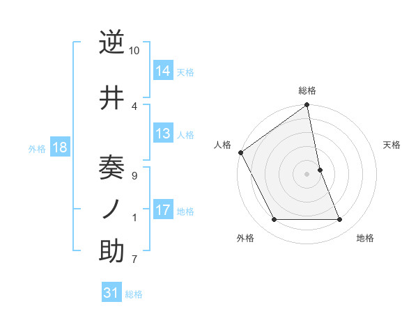 逆井 奏ノ助さんを姓名の画数から五運を鑑定