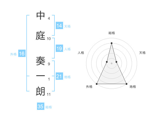 中庭 奏一朗さんを姓名の画数から五運を鑑定
