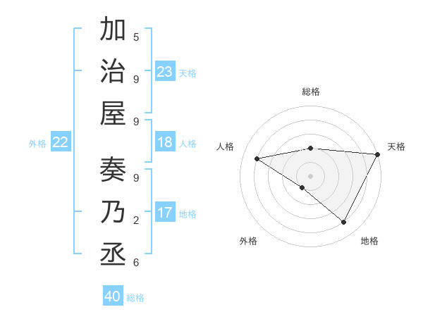 加治屋 奏乃丞さんを姓名の画数から五運を鑑定