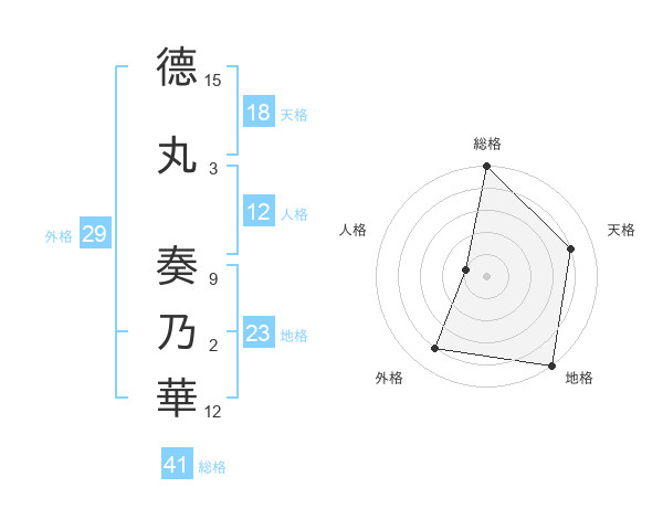 德丸 奏乃華さんを姓名の画数から五運を鑑定