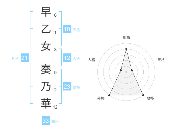 早乙女 奏乃華さんを姓名の画数から五運を鑑定