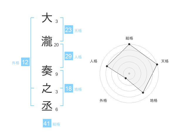 大瀧 奏之丞さんの天格は23画の5点!