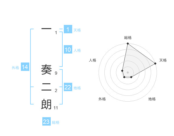 一 奏二朗さんの総格は23画の5点!