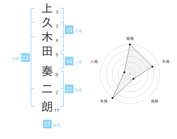 上久木田 奏二朗さんの総格は37画の5点