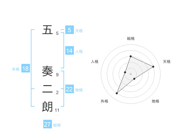 五 奏二朗さんの天格は5画の4点!