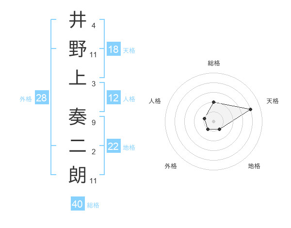 井野上 奏二朗さんの天格は18画の4点!