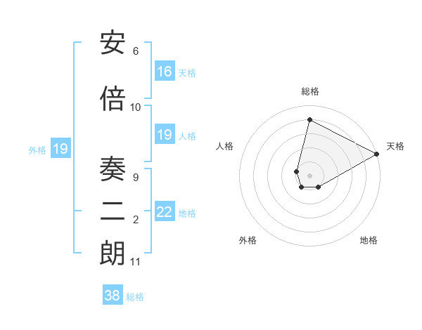 安倍 奏二朗さんを姓名の画数から五運を鑑定