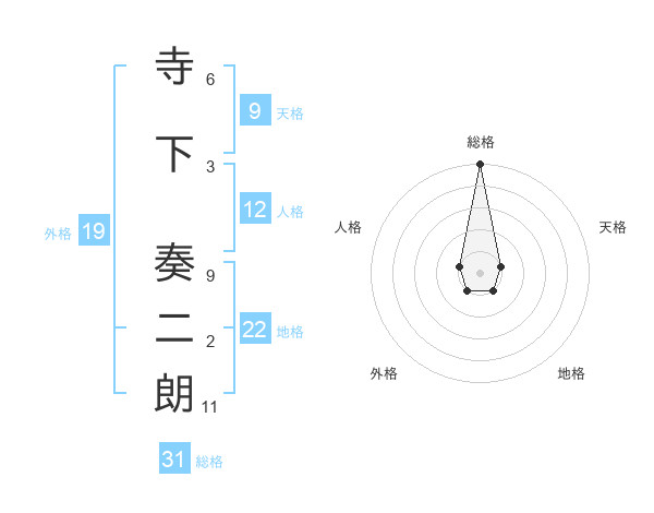 寺下 奏二朗さんの総格は31画の5点!