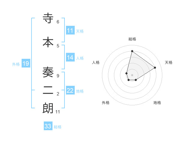寺本 奏二朗さんの総格は33画の4点!