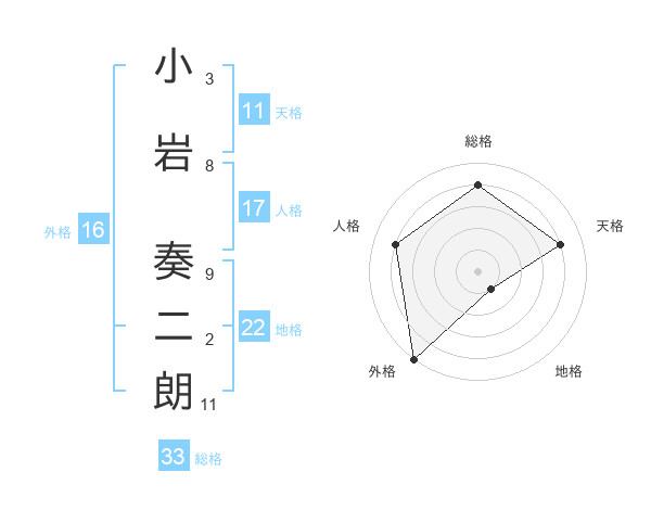 小岩 奏二朗さんを姓名の画数から五運を鑑定