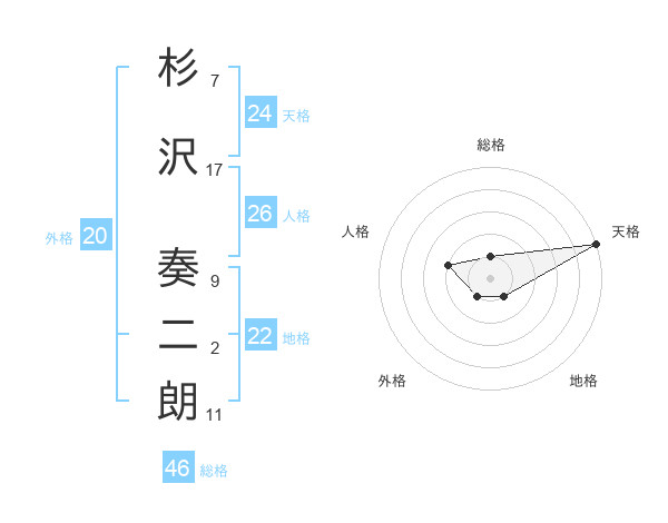 杉沢 奏二朗さんの天格は24画の5点!
