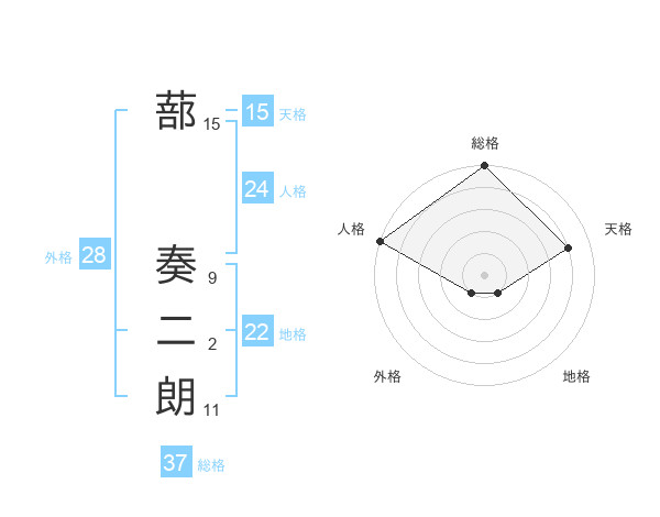蔀 奏二朗さんを姓名の画数から五運を鑑定