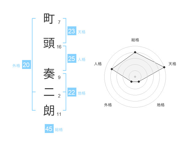 町頭 奏二朗さんの総格は45画の4点!